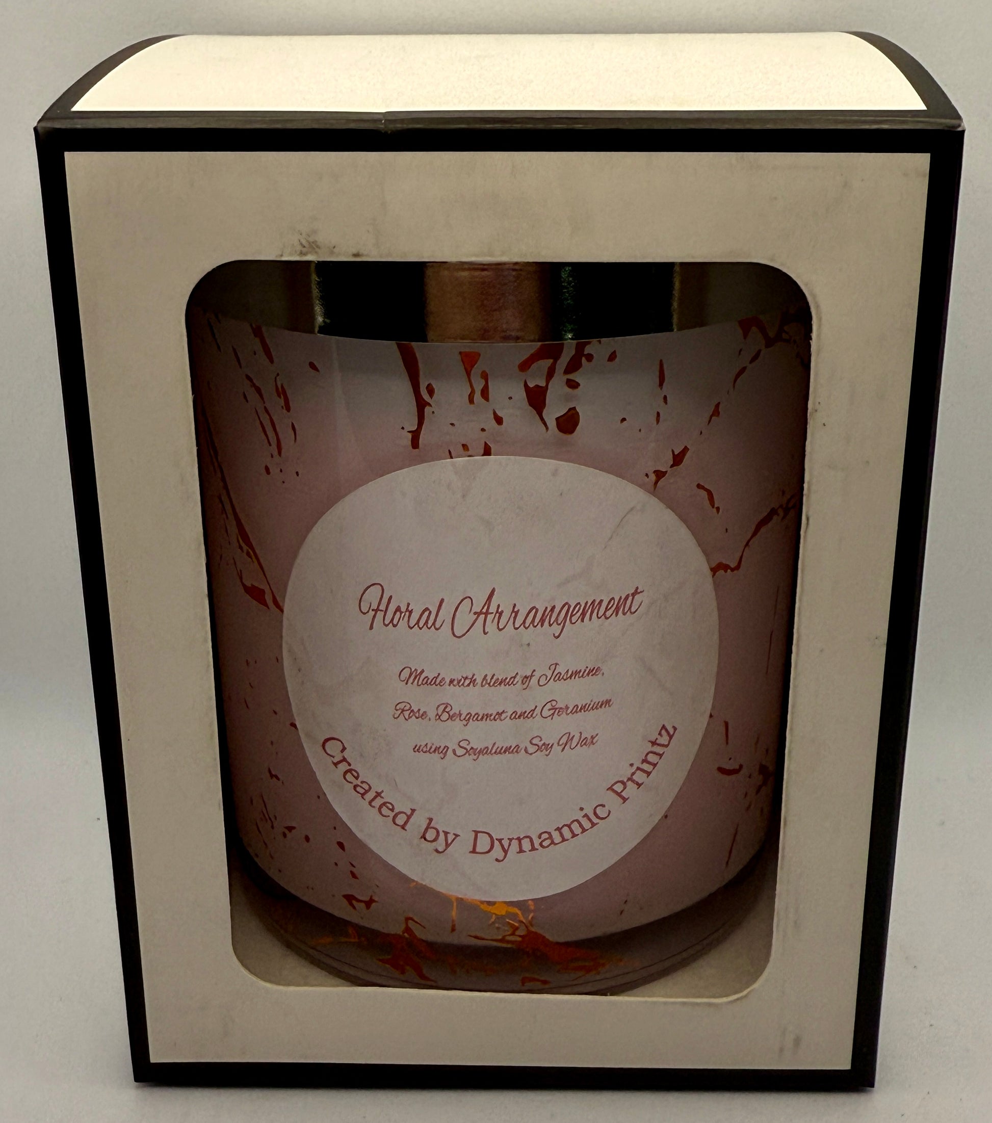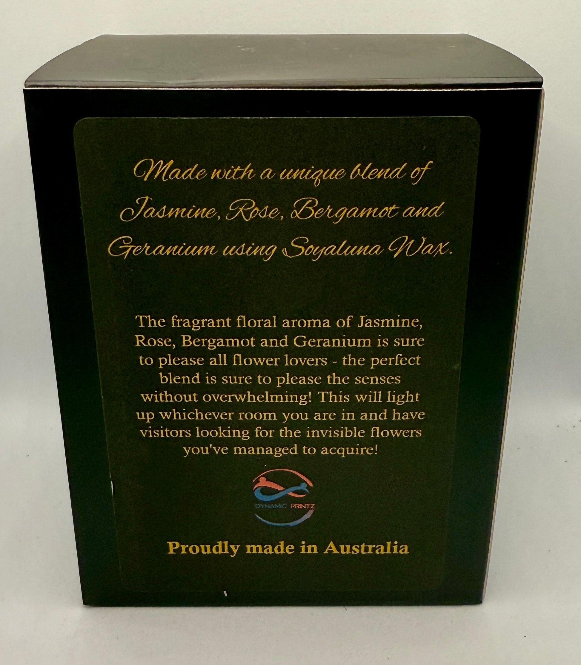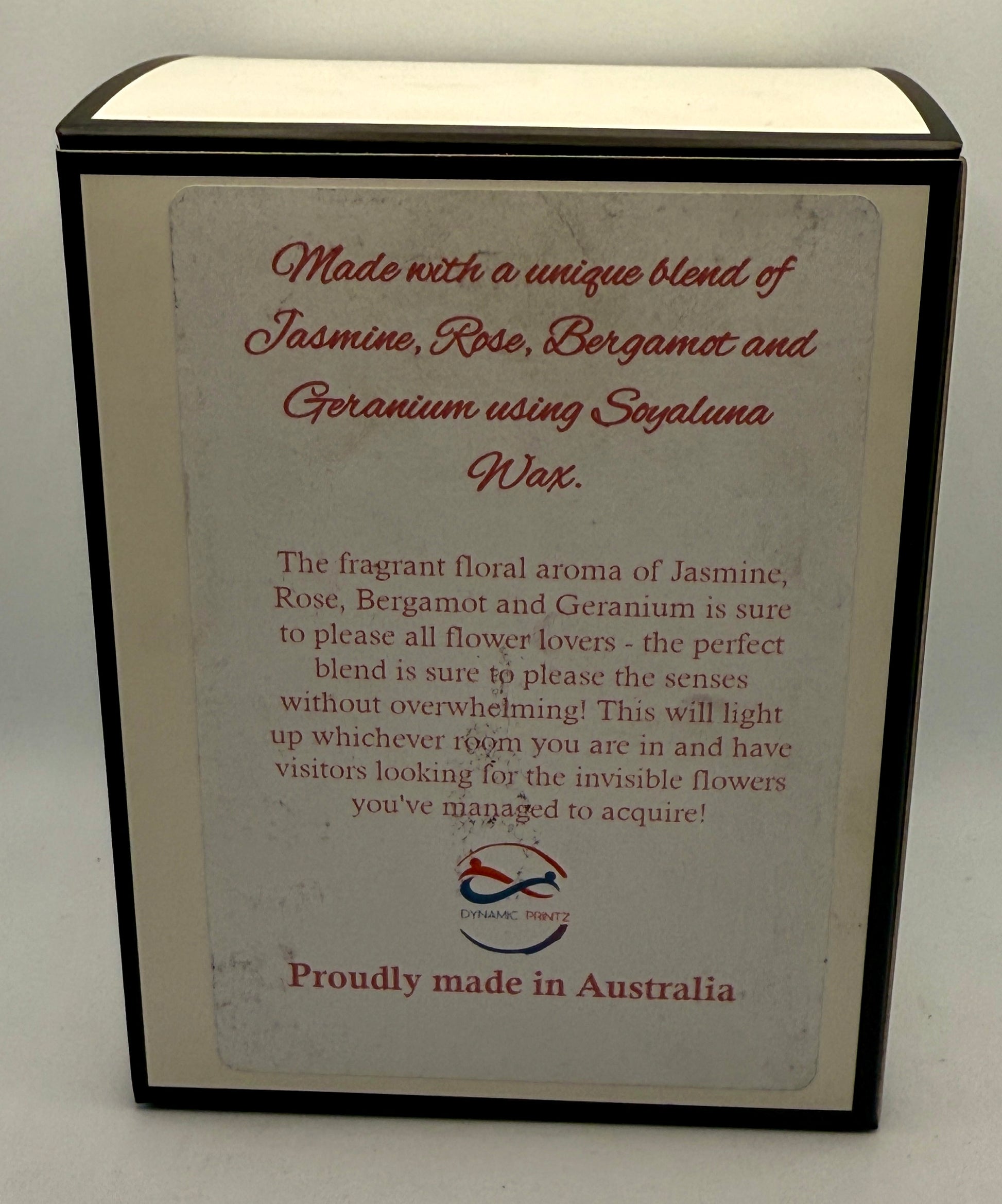 Scented candle with the perfect blend of essential oils featuring floral scents. Made with soy wax, this candle has the perfect ration of essential oils to create an aromatic effect without being overpowering and can be purchased in 285g double wicked candles.