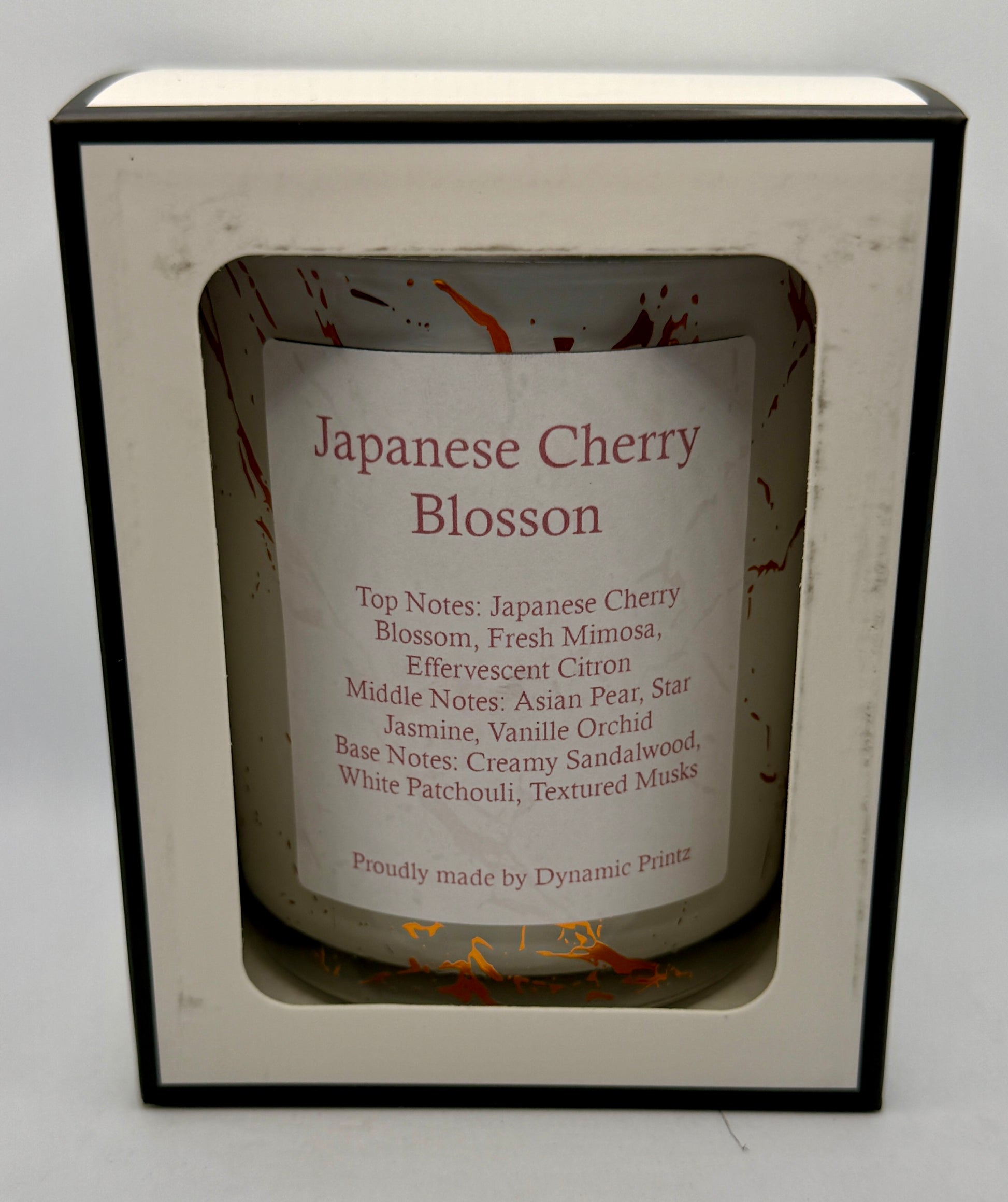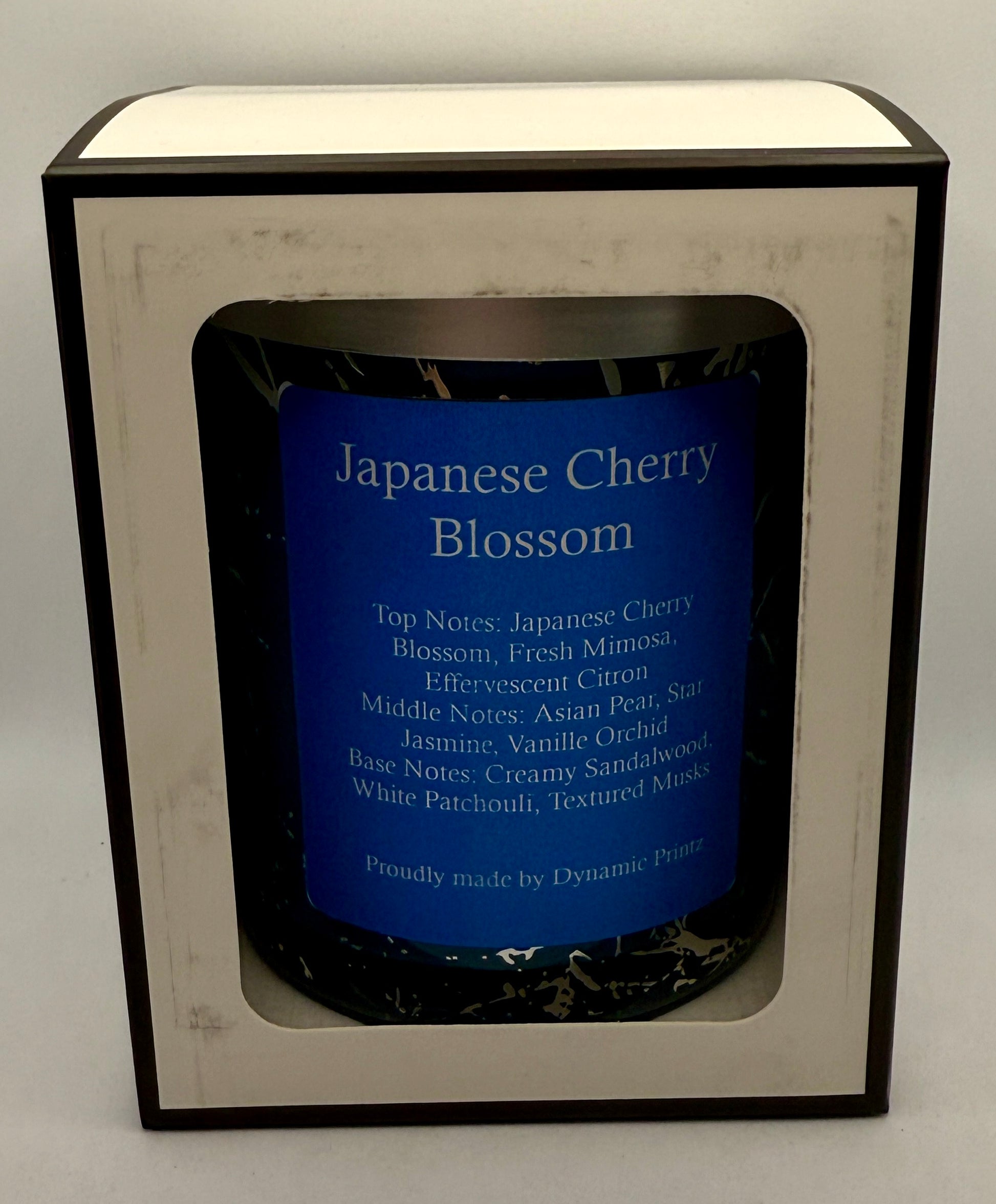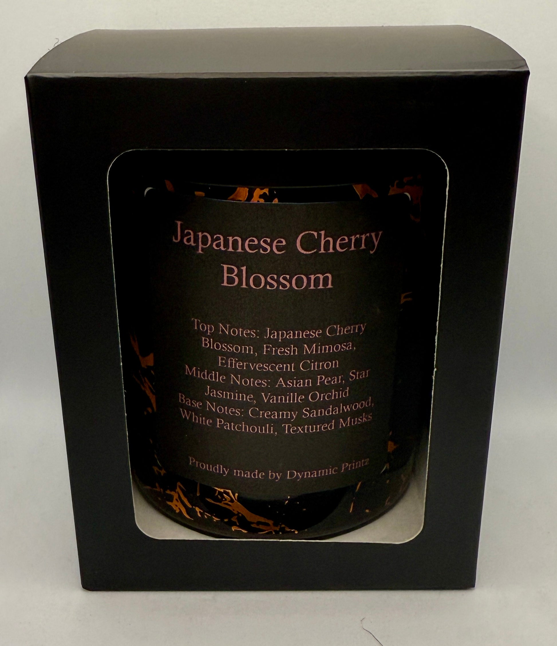 285g scented candle in a beautiful marbled jar. Experience the enchanting fragrance of Japanese Cherry Blossom, featuring top notes of Japanese Cherry Blossom, Fresh Mimosa, and Effervescent Citron that create a vibrant and uplifting aroma. The heart of the scent is a beautiful blend of Asian Pear, Star Jasmine, and Vanilla Orchid, adding a sweet and floral touch. Finally, the base notes of Creamy Sandalwood, White Patchouli, and Textured Musks provide a warm and comforting finish to this delightful fragrance. Together, these notes create a captivating and long-lasting scent that will fill your space with beauty and tranquility.