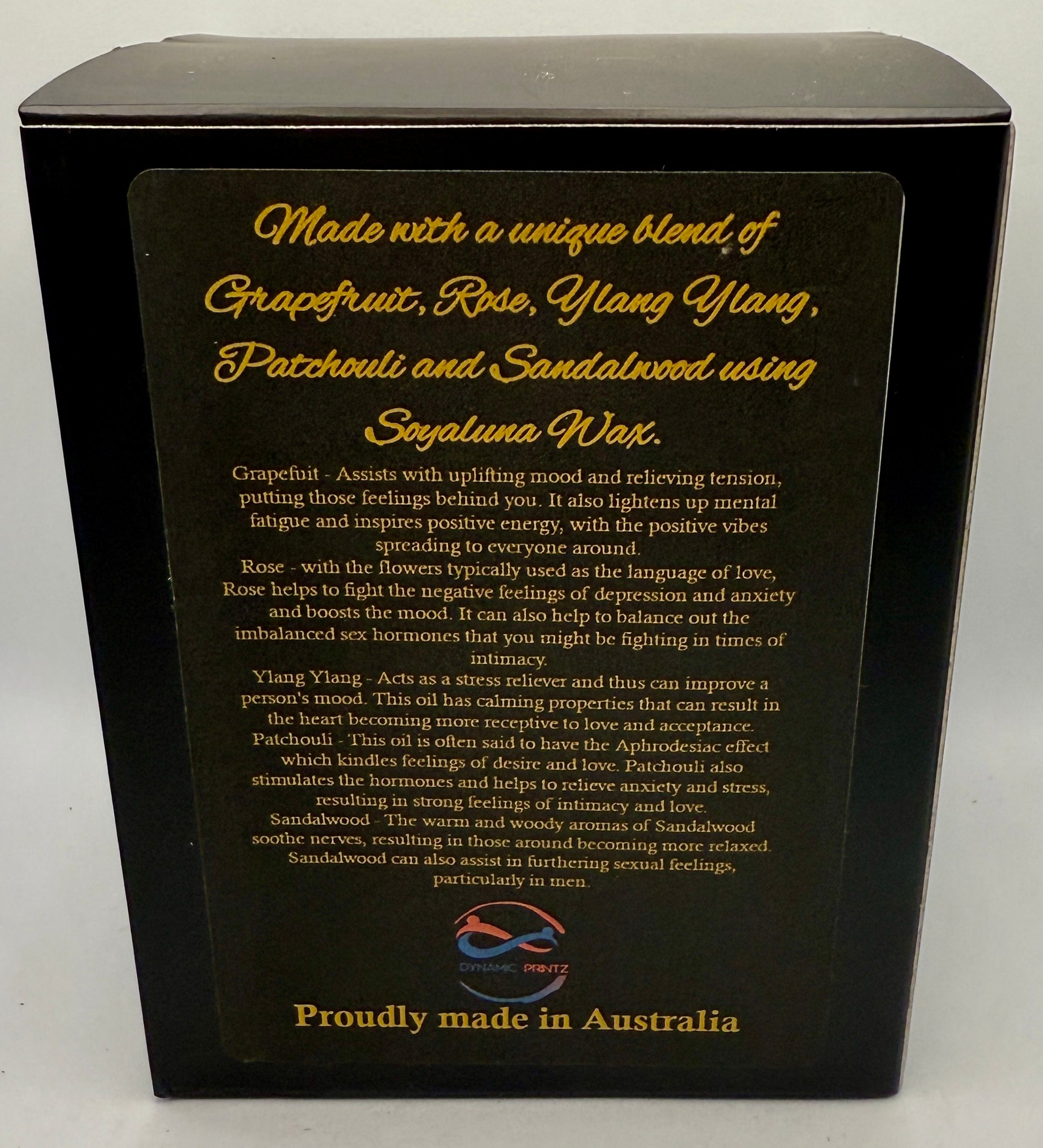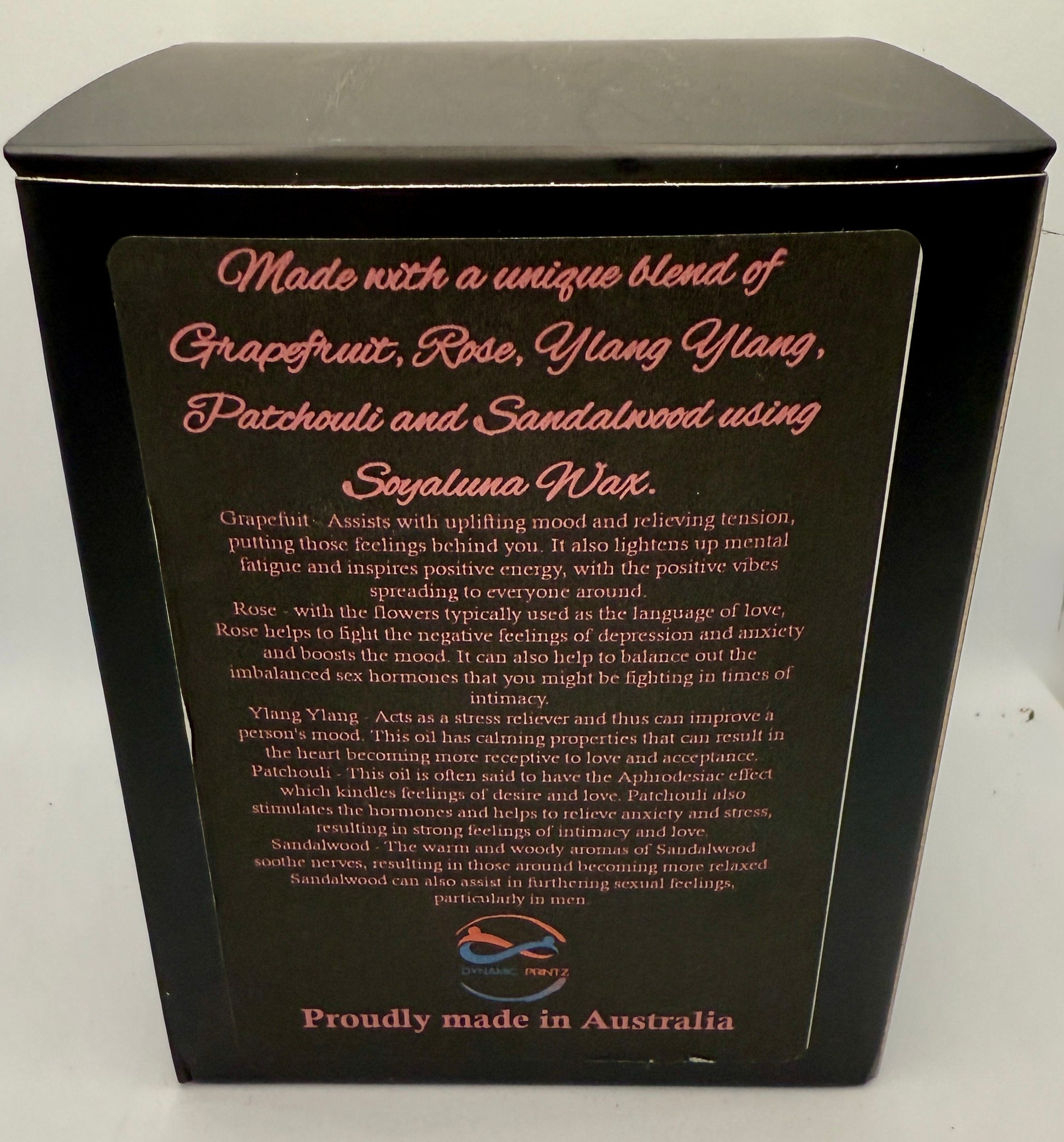 Scented candle with essential oils designed to help promote strong feelings of romance. Made with soy wax, this candle has the perfect ratio of essential oils to create an aromatic effect without being overpowering and can be purchased in a 285g double wicked candle. This is perfect for enhancing the feelings of love - both for your significant other and for yourself!